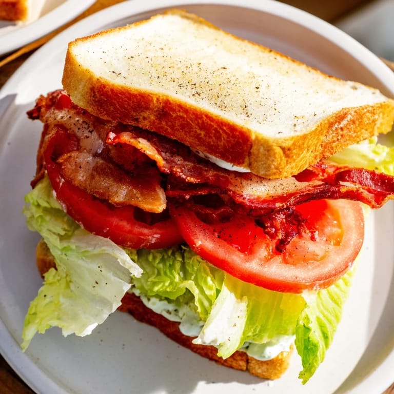 Save There's something about the smell of bacon hitting a hot skillet that makes everything else stop. I was rushing through a weekday morning when my partner called from the kitchen—that unmistakable sizzle and the promise of something simple but perfect waiting for me. The BLT isn't fancy or complicated, but it taught me that the best meals are often built on the smallest things done really well: crispy bacon that shatters between your teeth, tomato slices that still taste like summer, and bread toasted just enough to hold everything without falling apart.